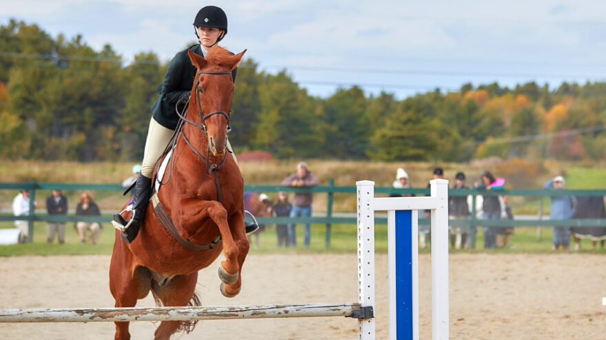 The club has been active ever since, competing against other club sport and varsity teams in New England in the form of riding called hunt seat equitation, which is judged on the rider and the rider’s effectiveness in communicating with the horse. There’s a level of competition for everyone. Beginners might compete in the introductory walk/trot; someone a bit more skilled might compete in the advanced walk/trot/canter; while the experienced riders will be jumping fences in their divisions. The shows take place in the fall and spring with riders gathering points to possibly move on to regional, zone, and national competitions.